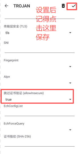 4、设置“跳过证书验证”为’true‘,再点击右上角保存。